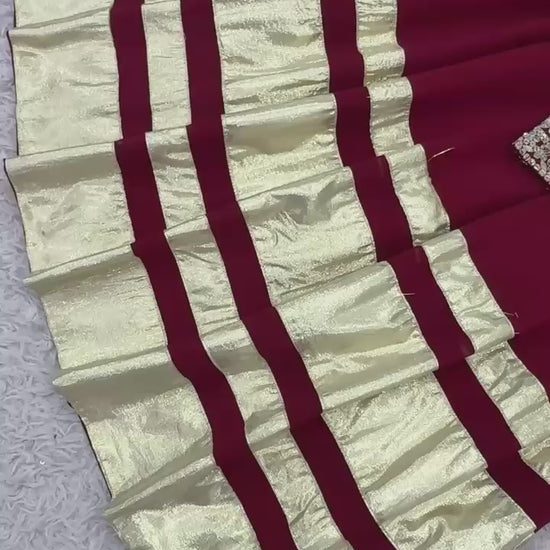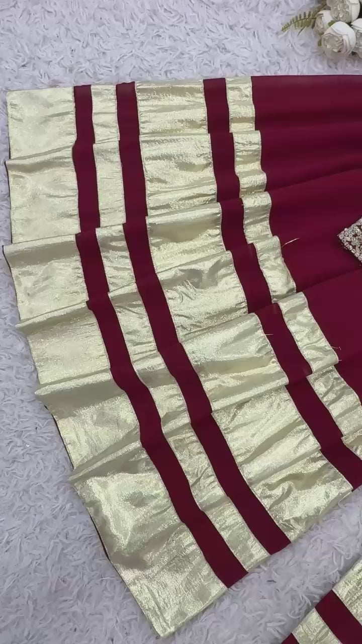 1. Premium Fabric & Finish – Rich georgette silk with embroidery for a luxurious designer feel.
